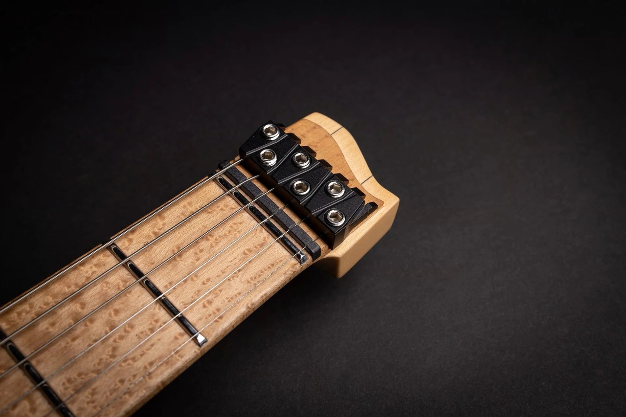 The most immediately noticeable feature of a .strandberg* instrument is the absence of a traditional headstock. By removing the headstock, the overall weight of the instrument is reduced. This shift in balance allows the guitar to sit more comfortably toward the player’s center, preventing neck dive and improving stability when seated or standing. The compact size of a headless instrument also makes it more practical for travel and easier to handle in confined spaces such as airplanes, buses, or studios.